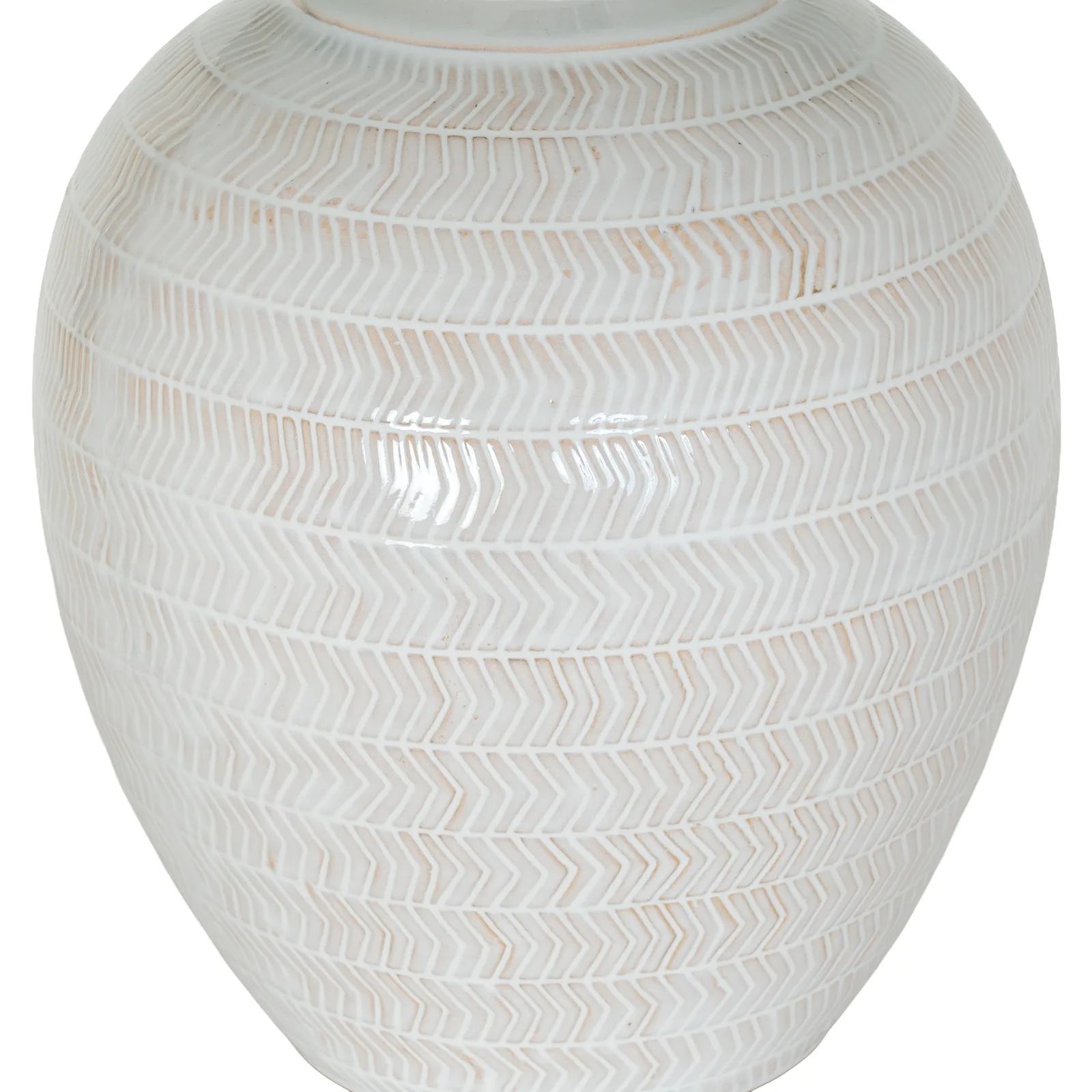 Chevronne Artisan Ceramic Table Lamp with Premium Linen Shade